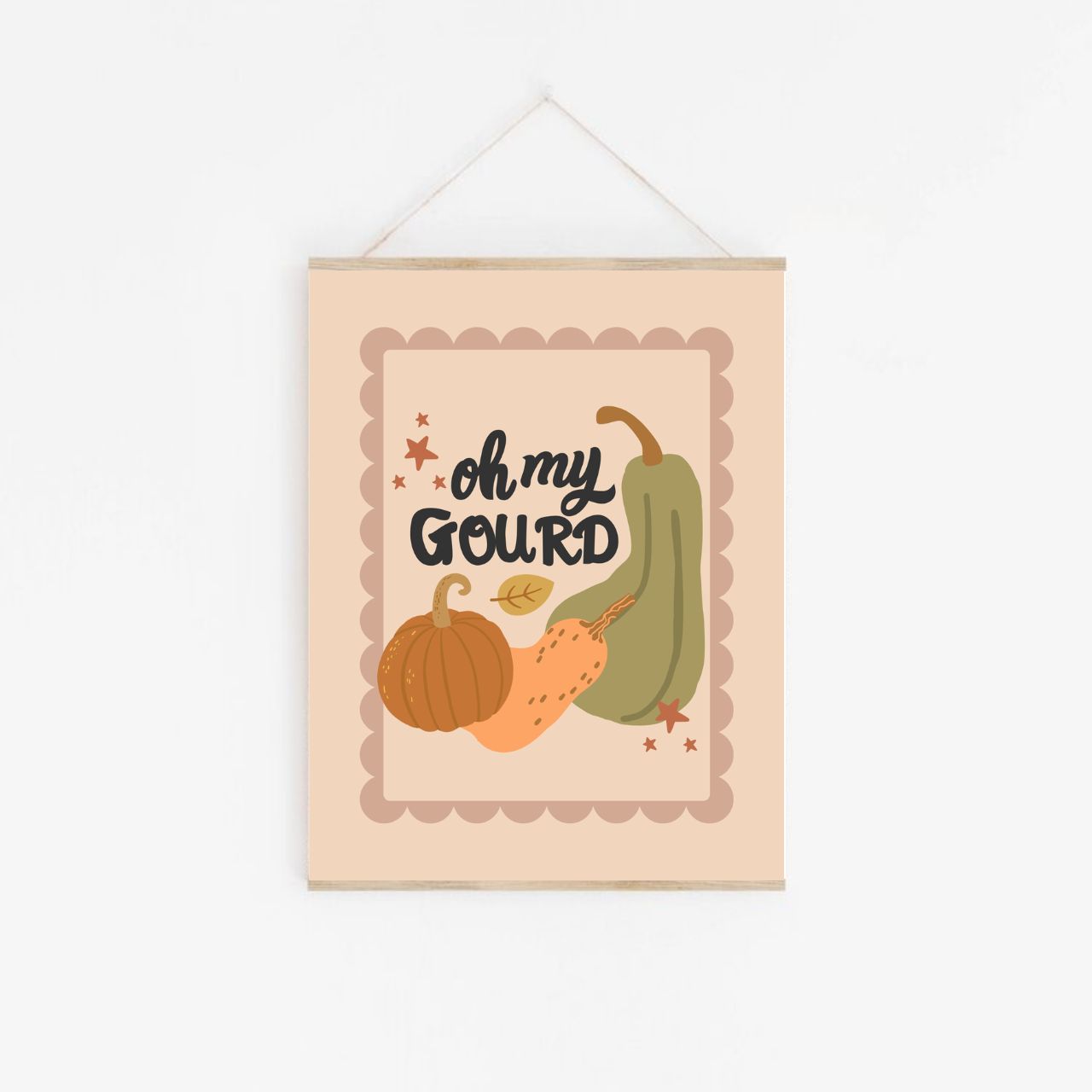 This set of seasonal wall prints is the perfect way to decorate instantly for fall. Featuring warm colors, playful hand-lettered sayings, and classic fall motifs, these art prints will add joy to your walls, entryway, kitchen, or classroom.