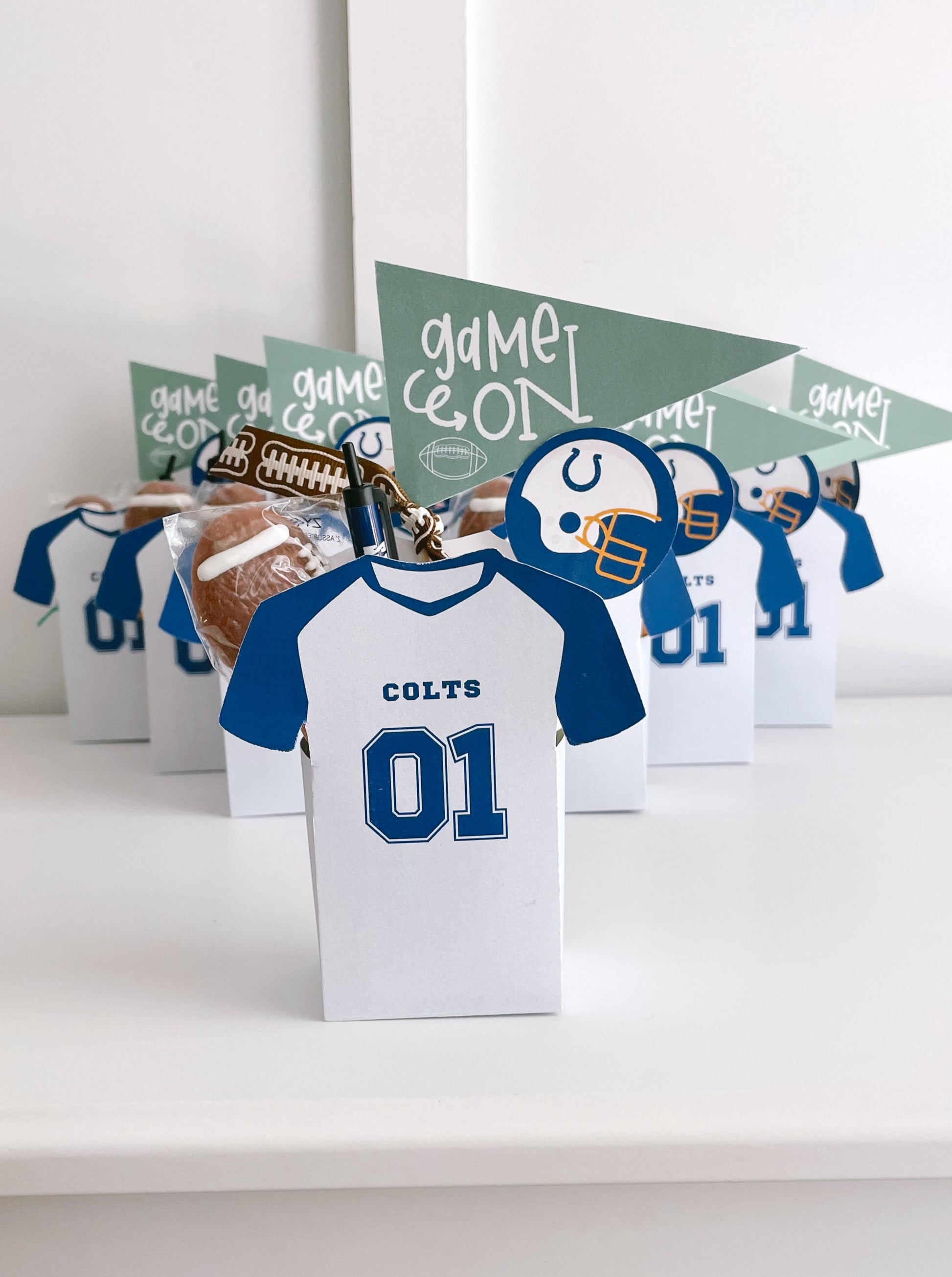 These printable football jersey boxes are the perfect way to customize any gift! Fill with treats or football goodies, and choose any of the 21 color combos!