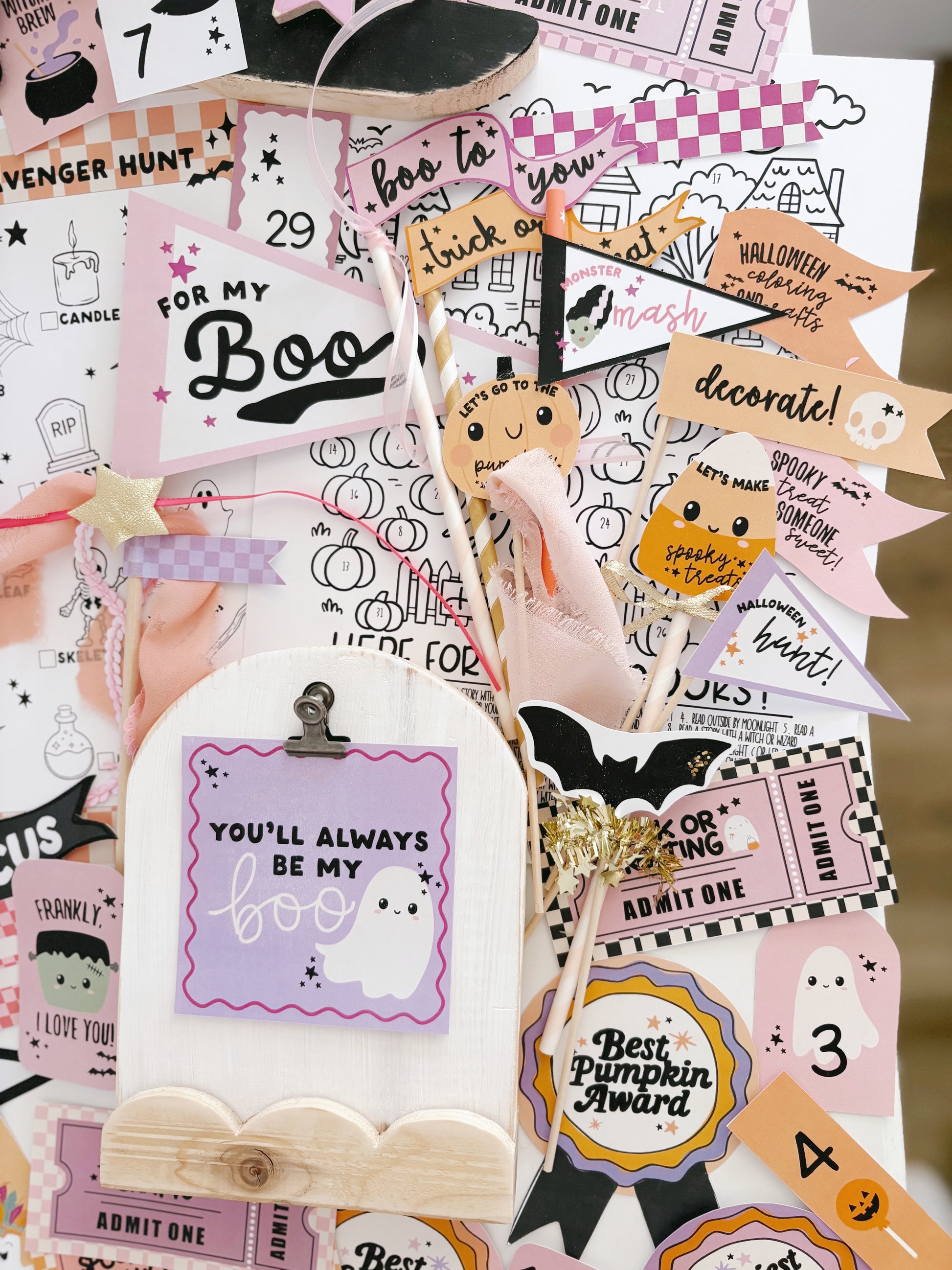 This 5-page digital download includes a mix of tags, flags, and pennants featuring fun sayings like “Spooky Cute,” “Cutest Boo,” and “Hocus Pocus.” Whether you’re hosting a Halloween bash, handing out trick-or-treat goodies, or putting together themed gifts, this set adds the perfect touch of charm and magic.