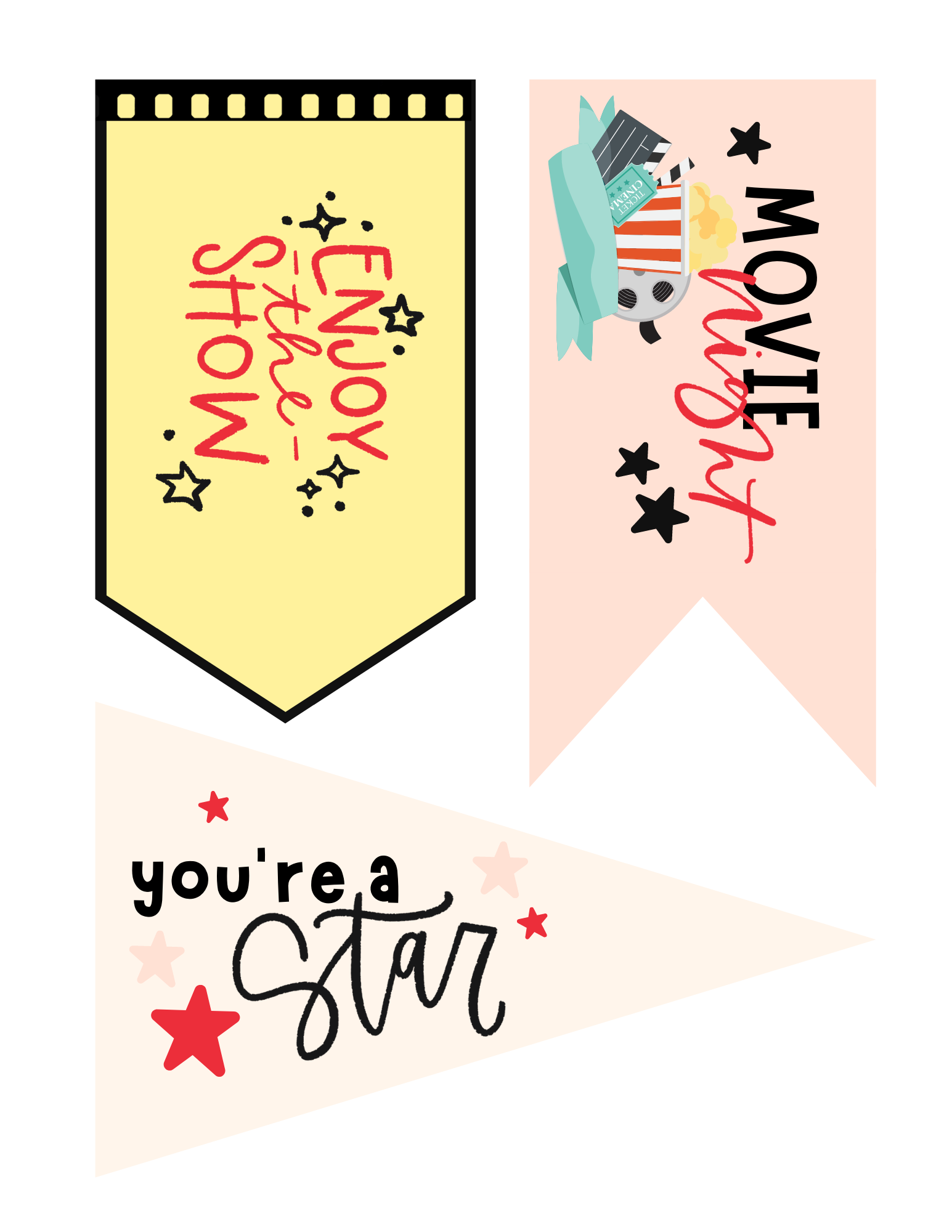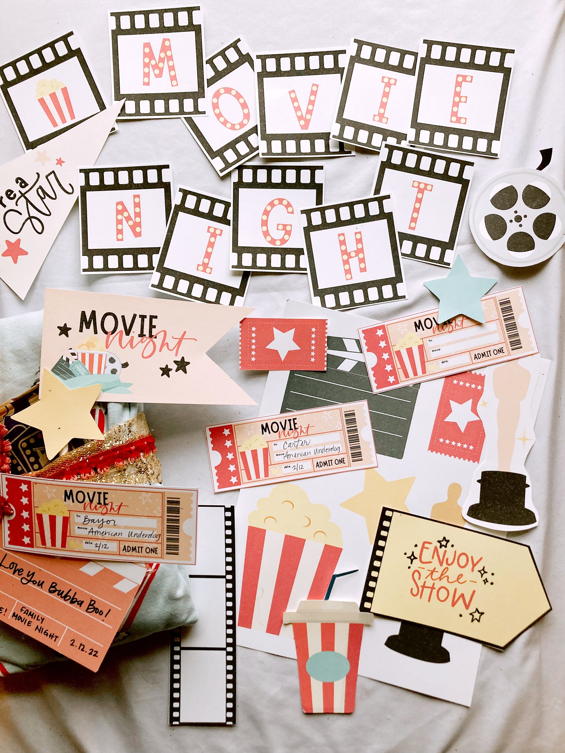 Create a magical experience at home with my family movie night printable bundle! Tickets, banners, pennants, tags, and more - everything you need to level up your family movie night game.