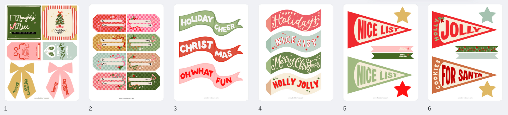 Make Christmas gifting extra magical with this brand-new Volume 5 set of printable tags + flags! Designed in classic Letter Vee style — playful lettering, retro holiday cheer, and soft vintage color palettes — these printables instantly elevate stockings, teacher gifts, neighbor surprises, and December basket magic. ✨